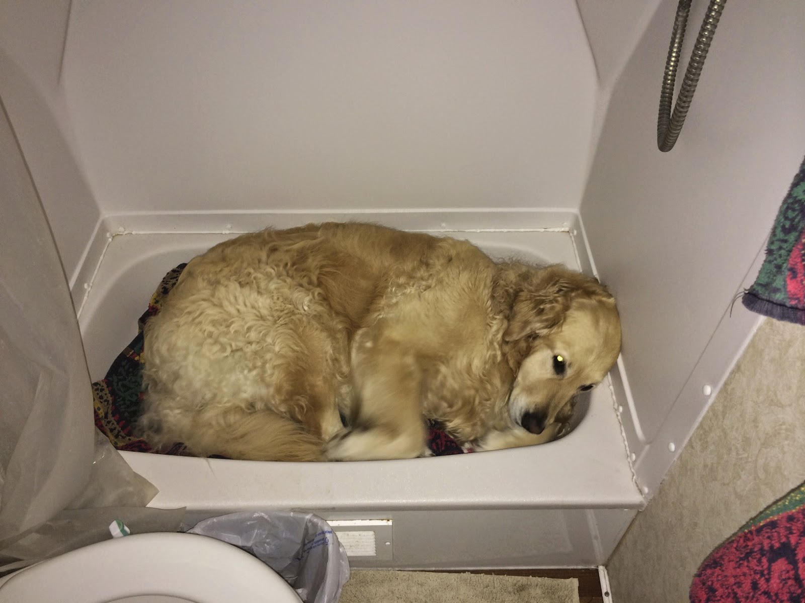 It's storming outside! So she goes to the bathtub.